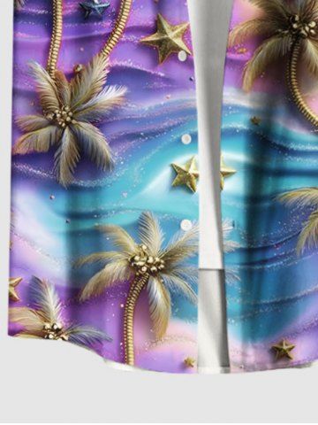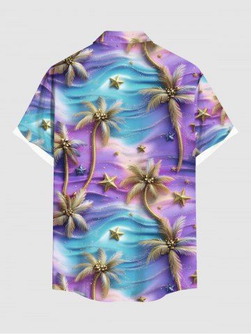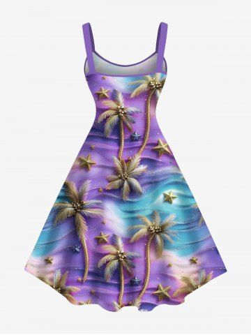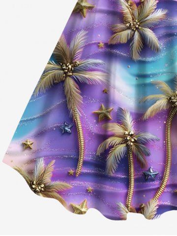 Tenue de plage hawaïenne assortie pour couples, grande taille, motif cocotier et étoile de mer ombré - Pourpre - Pourpre