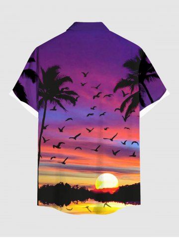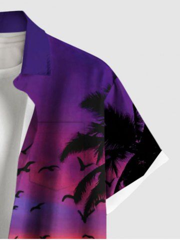 Tenue de plage hawaïenne assortie pour couples, grande taille, motif oiseau cocotier, coucher de soleil galactique et ombre ombrée - Pourpre - Pourpre