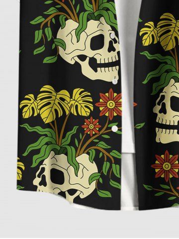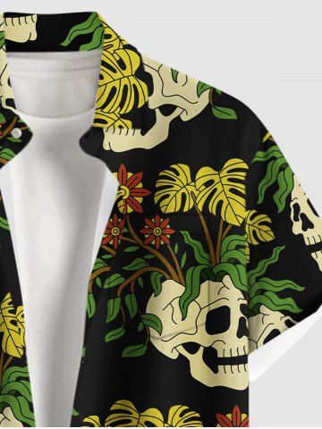Tenue de plage hawaïenne assortie pour couples, grandes tailles, à imprimé de crânes, feuilles tropicales et fleurs - Noir - Noir