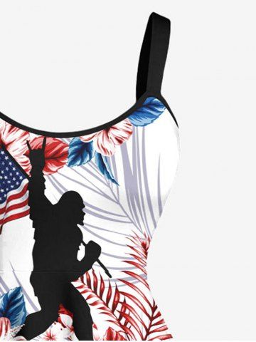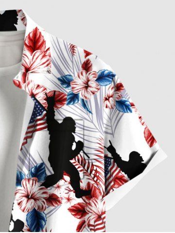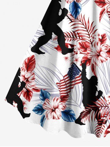 Tenue de plage hawaïenne assortie pour couples, grandes tailles, à motif floral tropical, drapeau américain et gorille - Blanc - Blanc