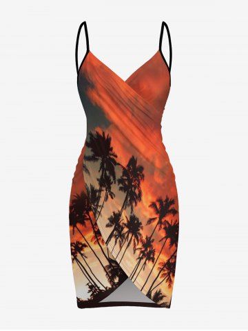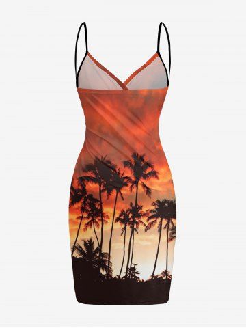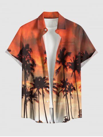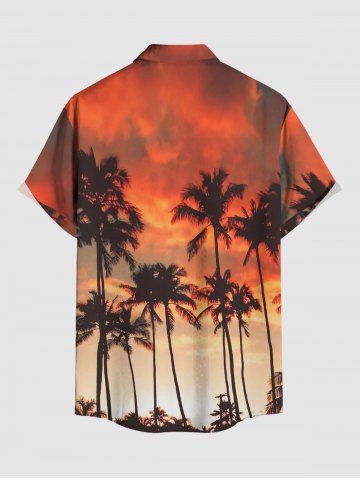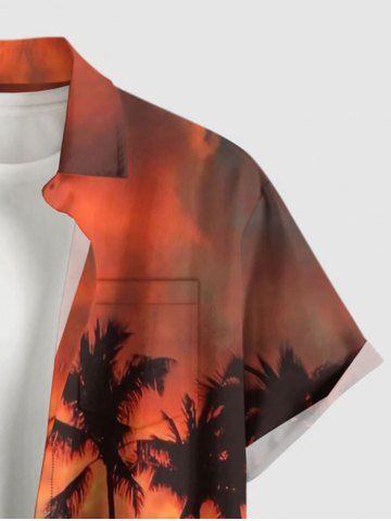 Tenue de plage hawaïenne assortie pour couples, imprimé crépuscule et cocotier ombré, grandes tailles - Orange Foncé