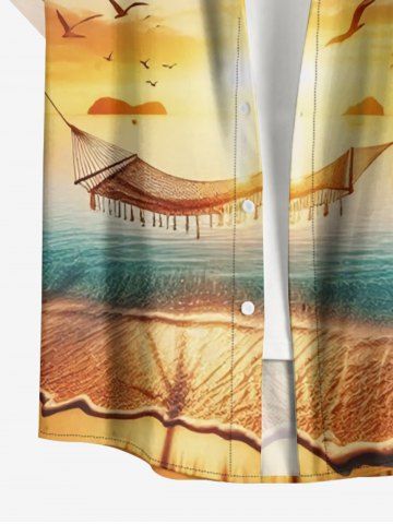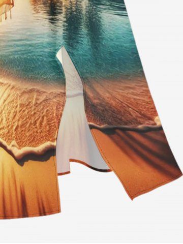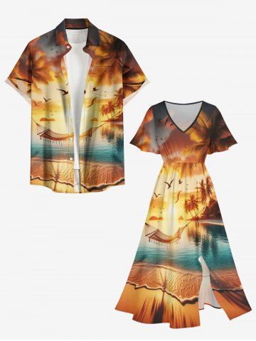 Tenues Hawaïennes Assorties> Tenue de plage hawaïenne assortie pour couples, motif coucher de soleil ombré avec cocotiers et mer, grandes tailles