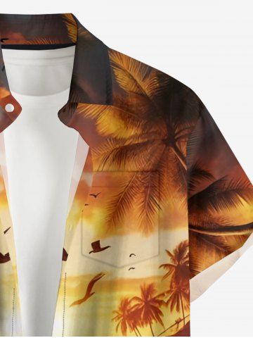Tenue de plage hawaïenne assortie pour couples, motif coucher de soleil ombré avec cocotiers et mer, grandes tailles - Brun Légère - Marron Clair