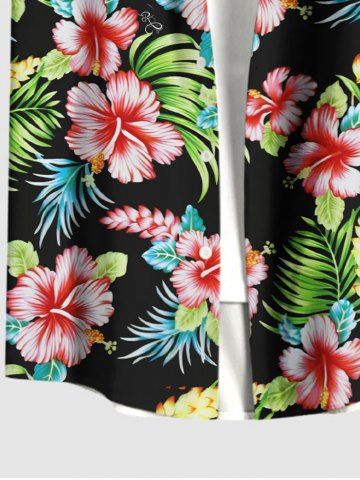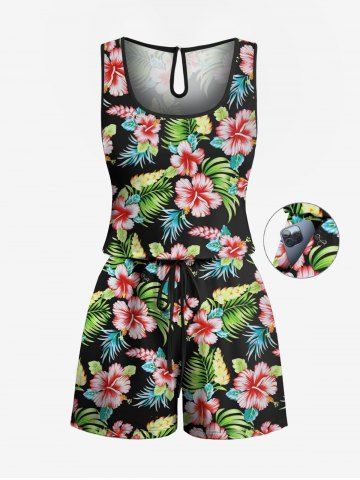 Combishort Imprimé à Feuille Tropicale et Tenue de Plage Grande Taille - Noir - Noir