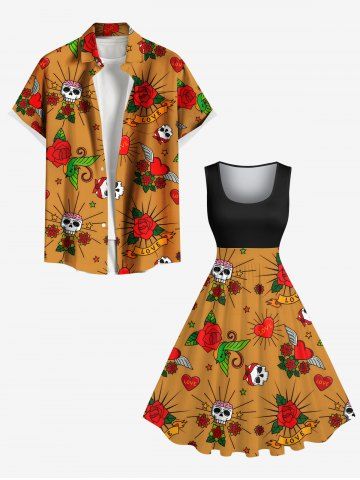 Tenue de Plage pour Couples en Forme de Cœur Rose et Crâne Grande-Taille - Noir - Noir