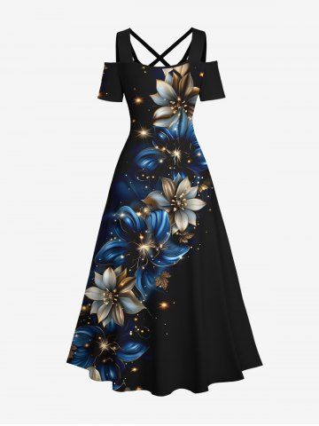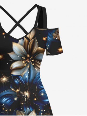 Tenues Hawaïennes Assorties> Tenue de Plage pour Couples en Mousseline de Soie et Brillante à Imprimé Etoiles Brillantes Grande-Taille