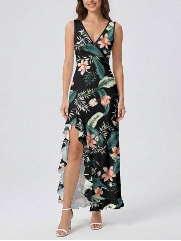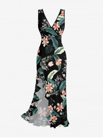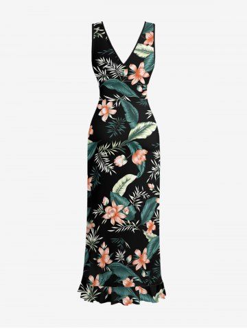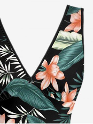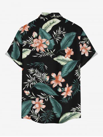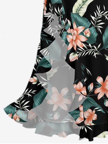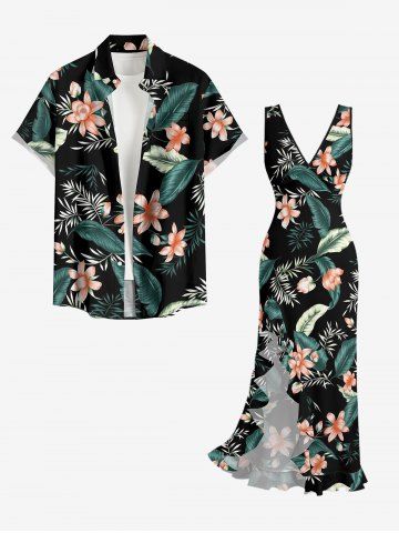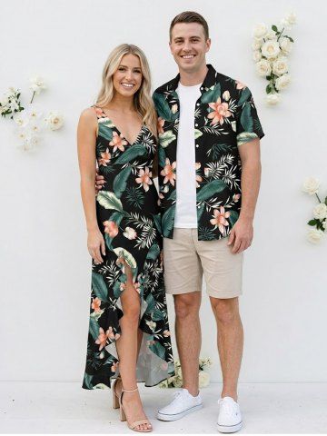Tropical Leaf Flower Print Matching Hawaii Beach Outfit For Couples - Noir - Noir