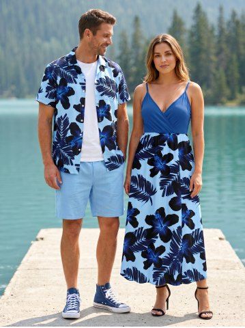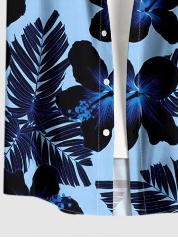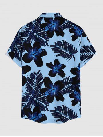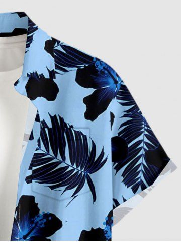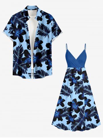 Tropical Leaf Hibiscus Flower Print Plus Size Matching Hawaii Beach Outfit For Couples - Bleu - Bleu