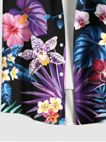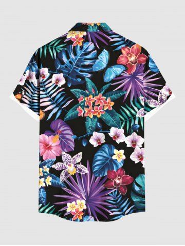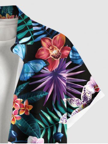 Tropical Leaf Hibiscus Flowers Butterfly Print Plus Size Matching Hawaii Beach Outfit For Couples - Noir - Noir