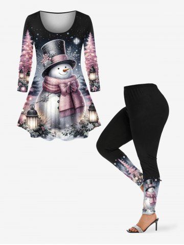 Ensemble assorti grande taille à imprimé Glaxy : sapin de Noël, bonhomme de neige, flocons de neige et fleurs - Noir - Noir
