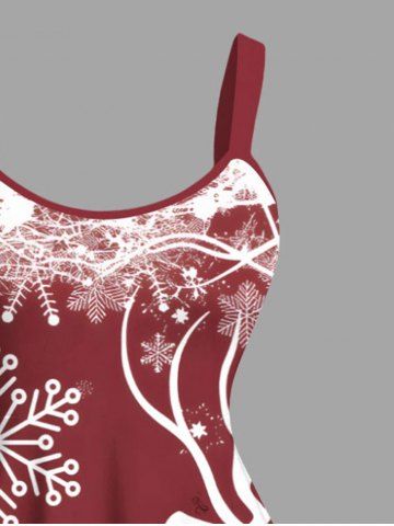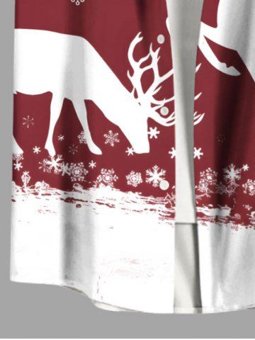 Ensemble assorti grande taille pour couples, imprimé colorblock de flocons de neige et de motifs de renne de Noël - Rouge Cerise