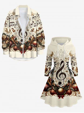 Tenus Assorties> Ensemble assorti grande taille pour couples, imprimé de symboles musicaux et de boules de Noël