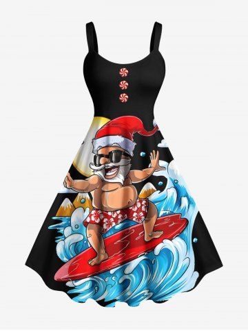 Ensemble assorti grande taille pour couples, imprimé Père Noël, soleil, nuages et vagues. - Noir - Noir