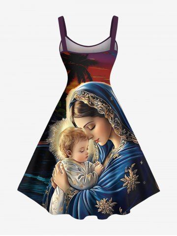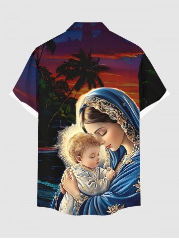 Tenus Assorties> Ensemble assorti grande taille pour couples, motif cocotier et crépuscule ombré, idéal pour Noël et la naissance de Jésus