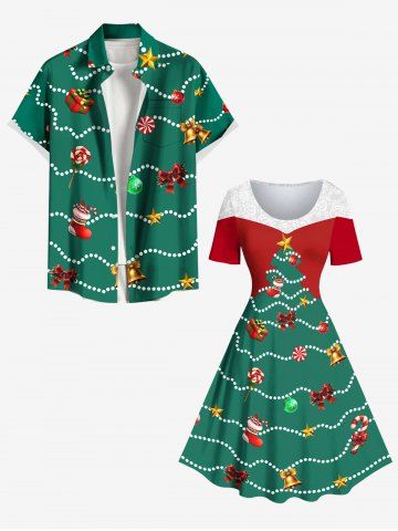 Ensemble assorti grande taille pour couples : sapin de Noël, chaussette, clochette, boule de bonbons, nœud papillon - Vert Profond