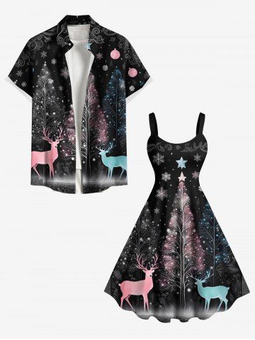 Tenus Assorties> Ensemble assorti grande taille pour couples : sapin de Noël pailleté, boule de printemps, imprimé flocons de neige
