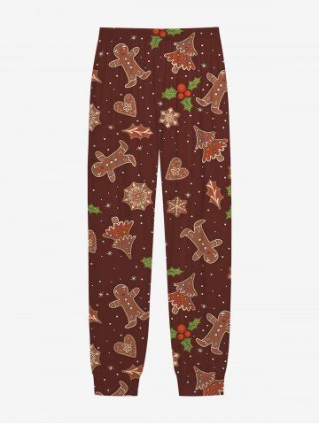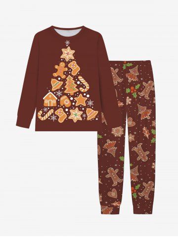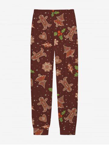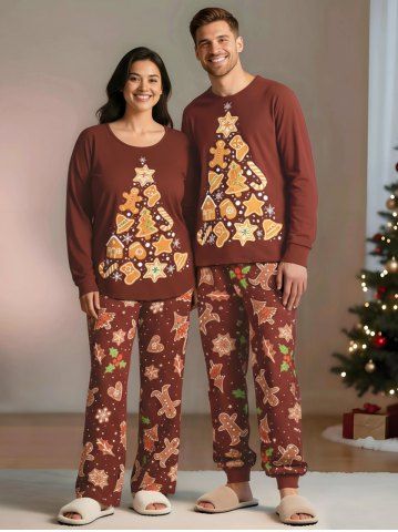 Ensemble de pyjamas de Noël assortis pour couples, avec clochettes, pain d'épice, bonbons et flocons de neige. - Rouge Brique