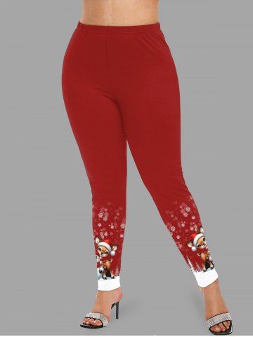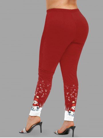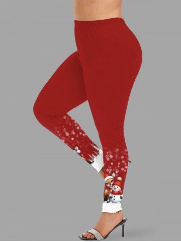 Ensemble T-shirt à manches longues et legging assorti grande taille pour femme, imprimé sapin de Noël, flocons de neige, élan et bonhomme de neige - Rouge - Rouge