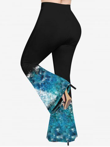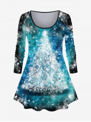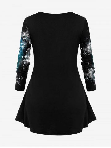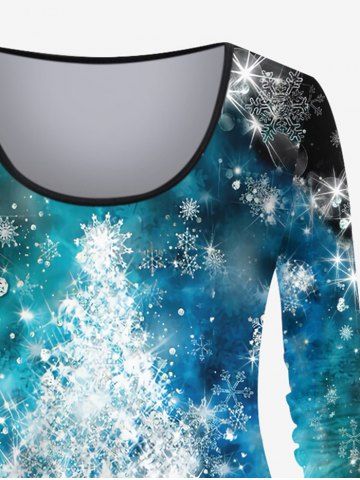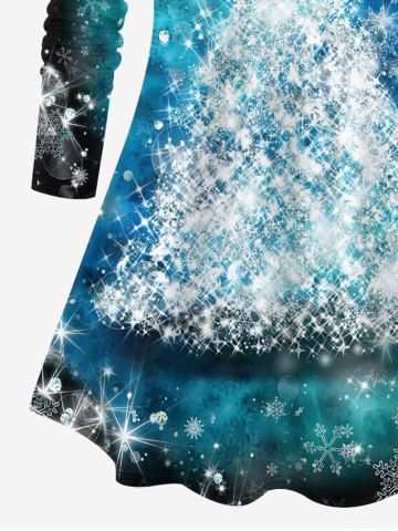 T-shirt Evasé Teinté Flocon de Neige et Sapin de Noël Imprimés de Grande Taille - Bleu - Bleu