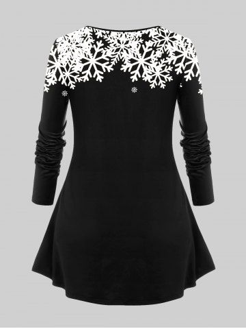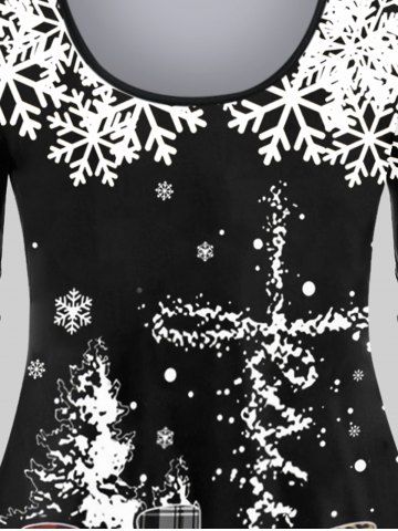 C*****a5Plus Size Christmas Snowman Snowflake Print T-shirtColor: BLACK Size: M | US 10Perfect fit (follow size chart) bright and cheerful holiday clothing. Soft material.