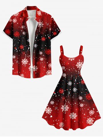 Tenue assortie grande taille à imprimé flocons de neige ombré et colorblock pour couples - Rouge - Rouge