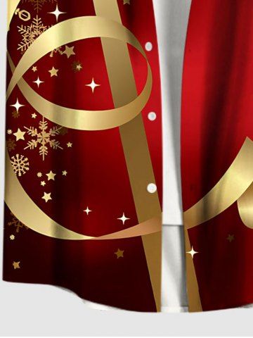 Chemise homme grande taille à boutons et poche, ornée d'un ruban de Noël, d'un nœud papillon, d'une clochette, d'une étoile et d'un flocon de neige. - Rouge - Rouge