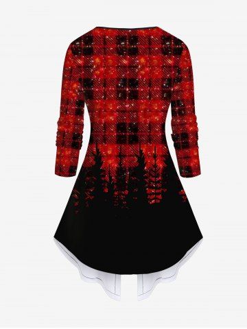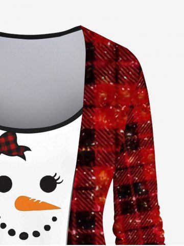Tops > Haut Sapin de Noël Bonhomme de Neige Imprimé à Carreaux avec Nœud Papillon de Grande Taille à Paillettes