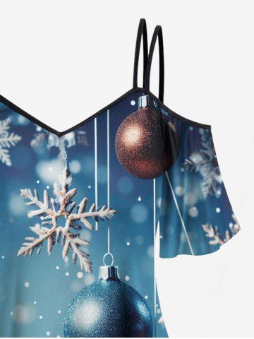 T-shirt à bretelles dénudées à imprimé flocons de neige et boules de Noël grande taille - Bleu - Bleu