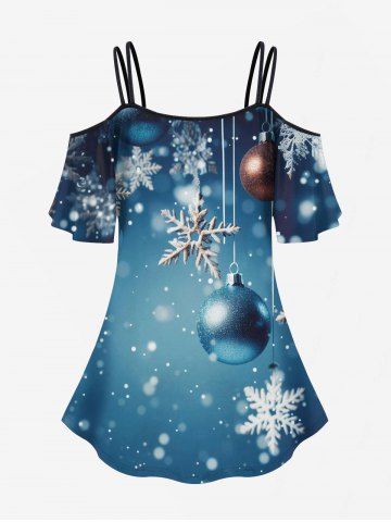 Tops > T-shirt à bretelles dénudées à imprimé flocons de neige et boules de Noël grande taille