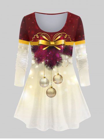 Tops > T-shirt à Imprimé Sapin de Noël et Boule de Grande Taille avec Nœud Papillon