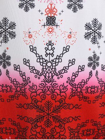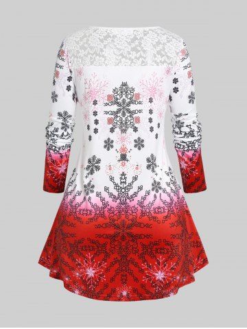 T-Shirt à Manches Longues avec Empiècements en Dentelle Motif Flocons de Neige de Noël Grande-Taille - Rouge - Rouge