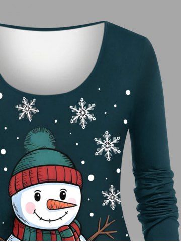 Tops > T-shirt à manches longues grande taille avec imprimé bonhomme de neige et flocons de neige, motif Noël