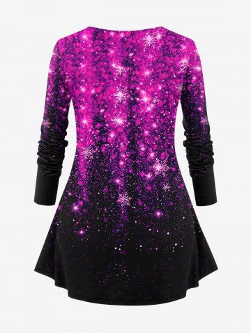 T-shirt à manches longues grande taille avec imprimé flocons de neige ombré à sequins scintillants en 3D - Pourpre - Pourpre