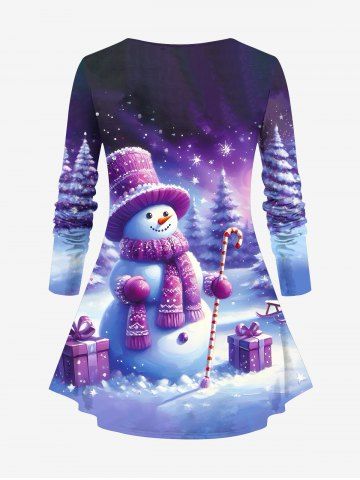 T-shirt à manches longues grande taille avec imprimé sapin de Noël, bonhomme de neige et flocons de neige - Pourpre - Pourpre