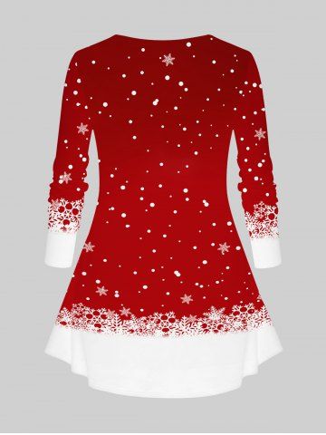 T-shirt à manches longues grande taille pour femme, imprimé colorblock de flocons de neige et de motifs de renne de Noël - Rouge - Rouge