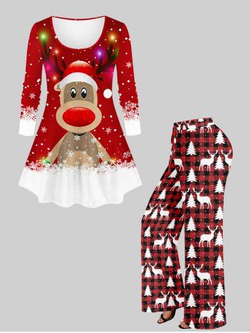 Tops > T-shirt à manches longues grande taille pour femme, imprimé colorblock de flocons de neige et de motifs de renne de Noël