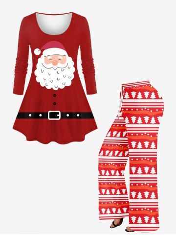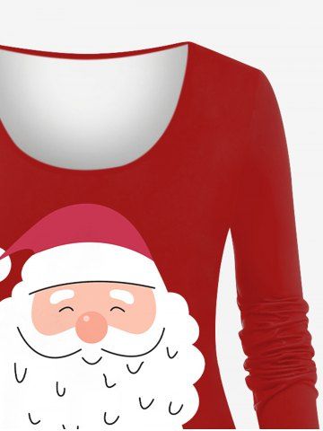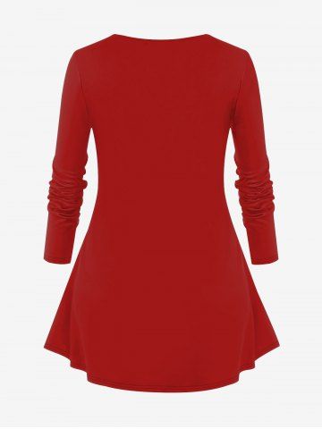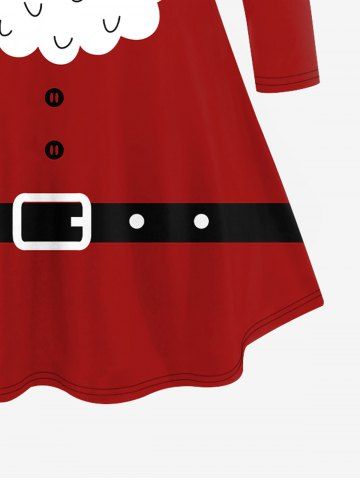 T-shirt à manches longues imprimé Père Noël et ceinture à boutons, grande taille - Rouge - Rouge