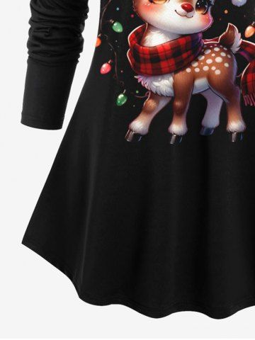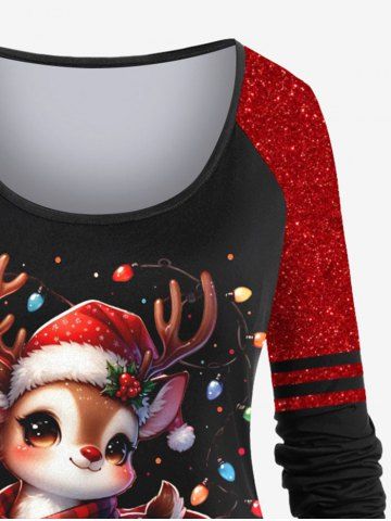 T-shirt à manches raglan imprimé 3D à paillettes scintillantes avec motif de cerf lumineux de Noël grande taille - Noir - Noir