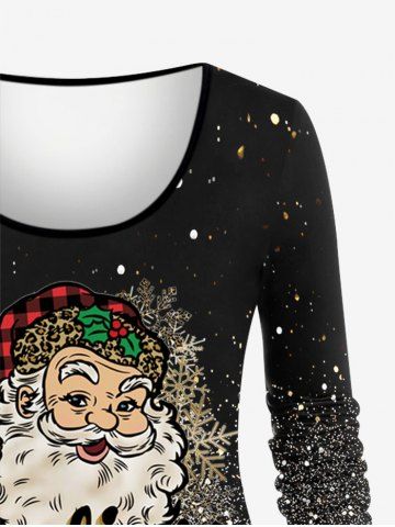 Tops > T-shirt Brillant 3D Père Noël Flocon de Neige et Père Noël Imprimés de Grande Taille à Paillettes