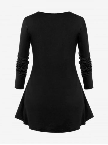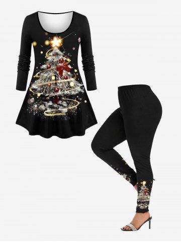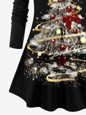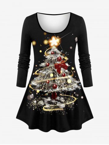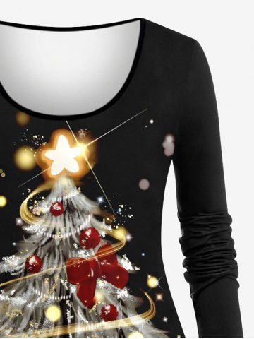 T-shirt Brillant Sapin de Noël Imprimé de Grande Taille à Pois - Noir - Noir
