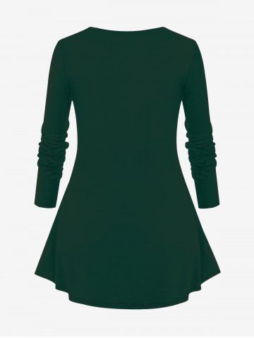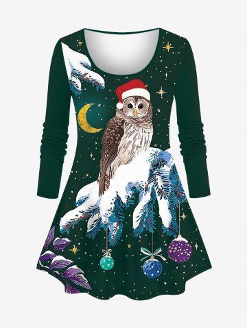 T-shirt Cerf Etoile Lune Boule de Noël et Arbre Imprimés à Manches Longues de Grande Taille - Vert Profond - 3x