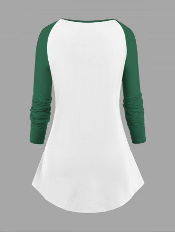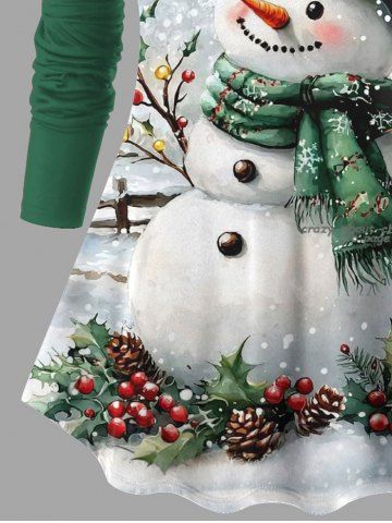 T-shirt de Noël à manches longues et imprimé bonhomme de neige et houx pour femme, grande taille - Vert - Vert