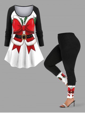 Tops > T-shirt de Noël à manches longues et imprimé houx pour femme, grande taille