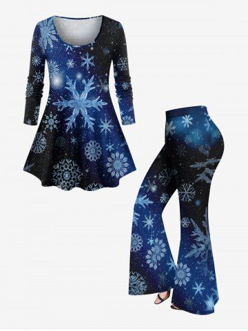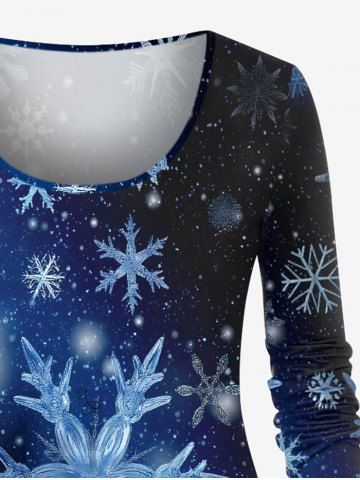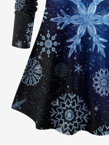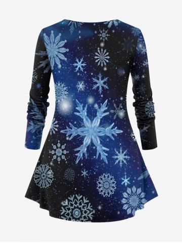 T-shirt de Noël grande taille à imprimé flocon de neige et galaxie - Bleu Marine - Bleu Marin