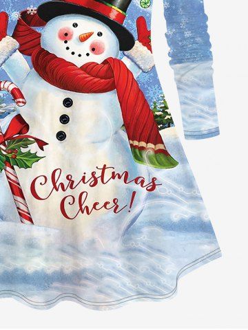 T-shirt grande taille imprimé bonhomme de neige et flocons de neige, motif bonbons de Noël - Bleu Clair - Bleu Clair