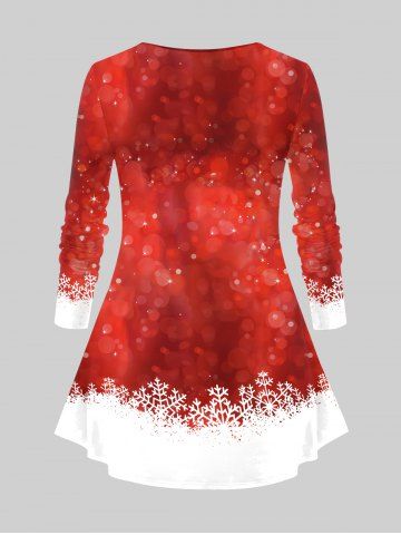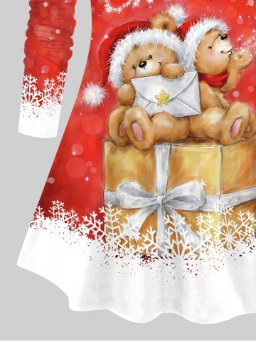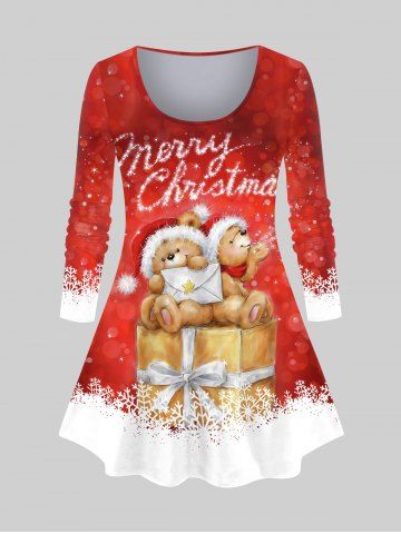 T-shirt imprimé colorblock grande taille avec chapeau de Noël, ours et flocons de neige - Rouge - Rouge