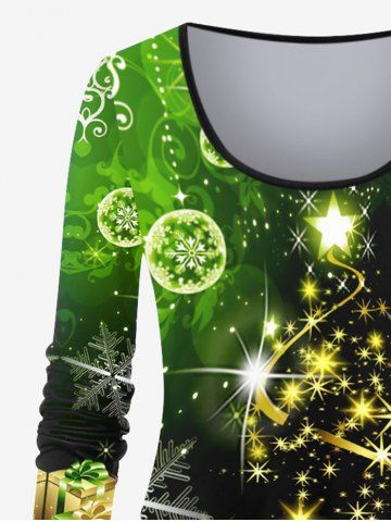 T-shirt Imprimé Élément de Noël Grande Taille - Vert Profond - 3x