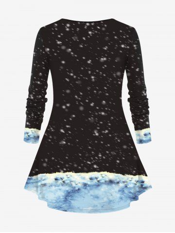 T-shirt Ombré Père Noël et Flocon de Neige Imprimés de Grande Taille à Manches Longues - Multi-a - 4x
