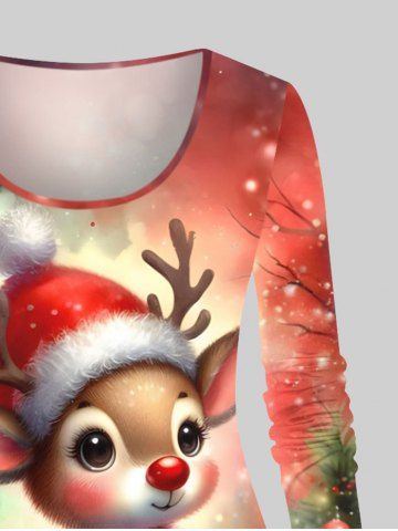 Tops > T-shirt Ombré Sapin de Noël et Boule Imprimés à Manches Longues de Grande Taille