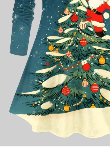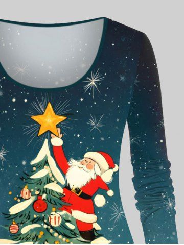 T-shirt Ombré Sapin de Noël et Galaxie Imprimés de Grande Taille à Paillettes - Vert - Vert